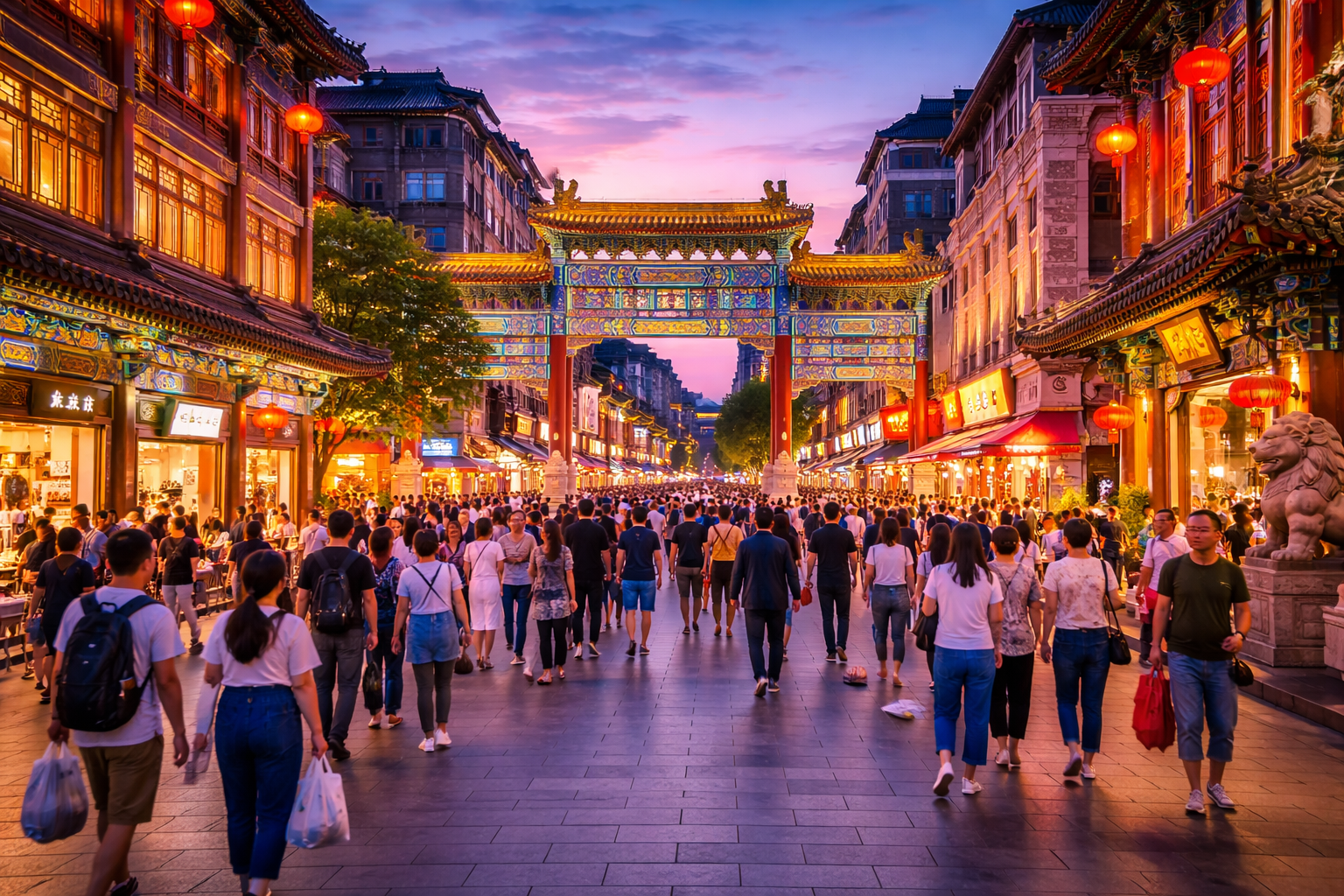 เพลิดเพลินกับการเดินเล่นและช้อปปิ้งที่ถนนคนเดินหวังฝูจิ่ง แหล่งช้อปปิ้งยอดนิยมของปักกิ่ง พร้อมลิ้มรสเมนูพิเศษขึ้นชื่อ เช่น เป็ดปักกิ่ง และหม้อไฟสไตล์มองโกเลีย