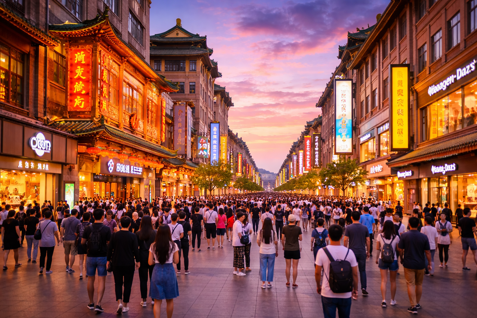 เดินชมย่านช้อปปิ้งชื่อดัง ถนนคนเดินหวังฝูจิ่ง แหล่งรวมร้านค้า ร้านอาหาร และสินค้าแฟชั่นยอดนิยม พร้อมแวะถ่ายรูปแลนด์มาร์กสำคัญของปักกิ่ง เช่น สนามกีฬารังนก และ Water Cube